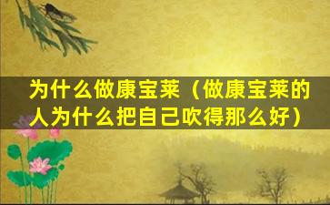 为什么做康宝莱(做康宝莱的人为什么把自己吹得那么好)