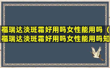 2、福瑞达淡斑霜好用吗女性能用吗知乎