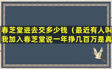 春芝堂进去交多少钱(最近有人叫我加入春芝堂说一年挣几百万是真的吗)