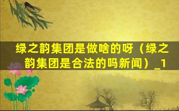 绿之韵集团是做啥的呀(绿之韵集团是合法的吗 新闻)