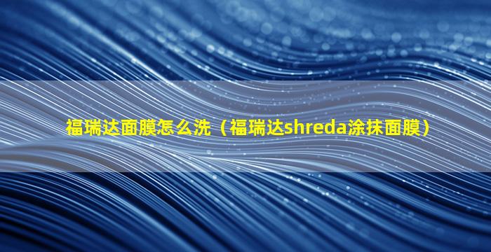 福瑞达面膜怎么洗(福瑞达shreda涂抹面膜)
