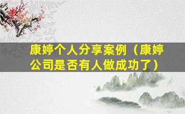康婷个人分享案例(康婷公司是否有人做成功了)