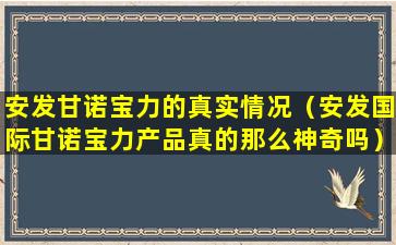 安发甘诺宝力的真实情况(安发国际甘诺宝力产品真的那么神奇吗)