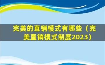 完美的直销模式有哪些(完美直销模式制度2023)