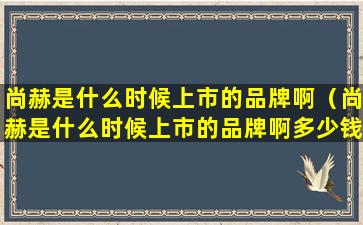 2、尚赫是什么时候上市的品牌啊多少钱