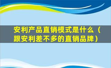 安利产品直销模式是什么(跟安利差不多的直销品牌)