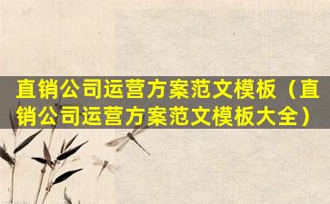 直销公司运营方案范文模板(直销公司运营方案范文模板大全)