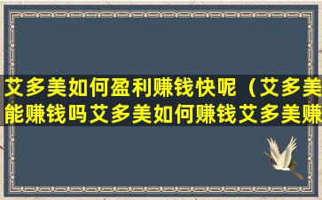 艾多美如何盈利赚钱快呢(艾多美能赚钱吗艾多美如何赚钱艾多美赚钱容易吗)