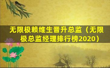 无限极赖维生晋升总监(无限极总监经理排行榜2020)