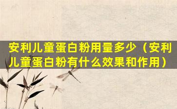 安利儿童蛋白粉用量多少(安利儿童蛋白粉有什么效果和作用)