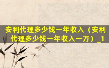 安利代理多少钱一年收入(安利代理多少钱一年收入一万)