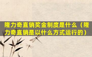 隆力奇直销奖金制度是什么(隆力奇直销是以什么方式运行的)