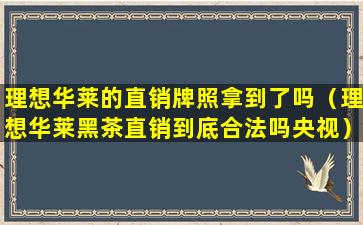理想华莱的直销牌照拿到了吗(理想华莱黑茶直销到底合法吗央视)