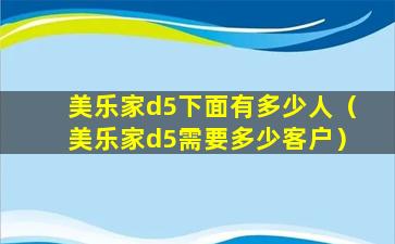 美乐家d5下面有多少人(美乐家d5需要多少客户)