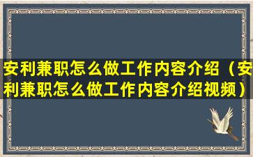 安利兼职怎么做工作内容介绍(安利兼职怎么做工作内容介绍视频)
