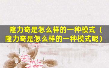 隆力奇是怎么样的一种模式(隆力奇是怎么样的一种模式呢)