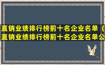 直销业绩排行榜前十名企业名单(直销业绩排行榜前十名企业名单公布)