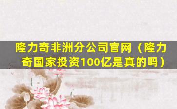 隆力奇非洲分公司官网(隆力奇国家投资100亿是真的吗)