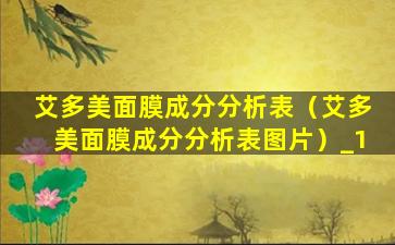 艾多美面膜成分分析表(艾多美面膜成分分析表图片)