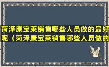 菏泽康宝莱销售哪些人员做的最好呢(菏泽康宝莱销售哪些人员做的最好呢视频)