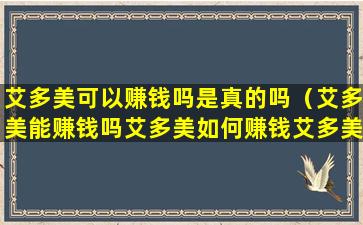 1、艾多美可以赚钱吗是真的吗