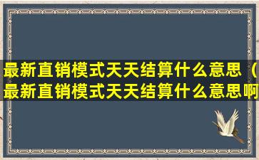 最新直销模式天天结算什么意思(最新直销模式天天结算什么意思啊)