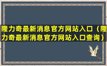 隆力奇最新消息官方网站入口(隆力奇最新消息官方网站入口查询)