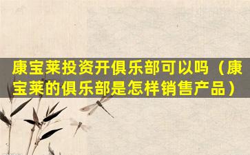 康宝莱投资开俱乐部可以吗(康宝莱的俱乐部是怎样销售产品)