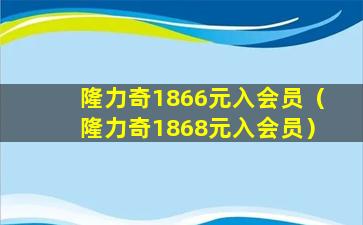 隆力奇1866元入会员(隆力奇1868元入会员)