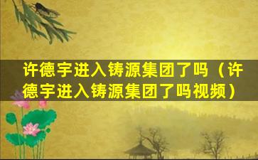 许德宇进入铸源集团了吗(许德宇进入铸源集团了吗视频)
