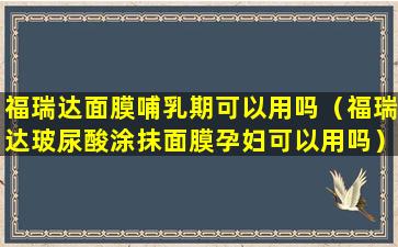 福瑞达面膜哺乳期可以用吗(福瑞达玻尿酸涂抹面膜孕妇可以用吗)