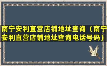 南宁安利直营店铺地址查询(南宁安利直营店铺地址查询电话号码)