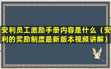 安利员工激励手册内容是什么(安利的奖励制度最新版本视频讲解)