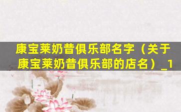 康宝莱奶昔俱乐部名字(关于康宝莱奶昔俱乐部的店名)