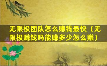 无限极团队怎么赚钱最快(无限极赚钱吗能赚多少怎么赚)
