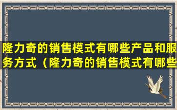 隆力奇的销售模式有哪些产品和服务方式(隆力奇的销售模式有哪些产品和服务方式和特点)