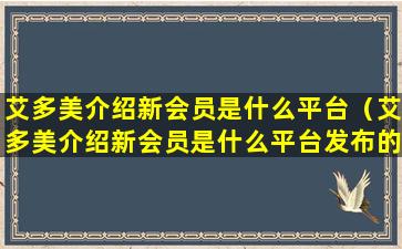 艾多美介绍新会员是什么平台(艾多美介绍新会员是什么平台发布的)