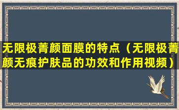 无限极菁颜面膜的特点(无限极菁颜无痕护肤品的功效和作用视频)