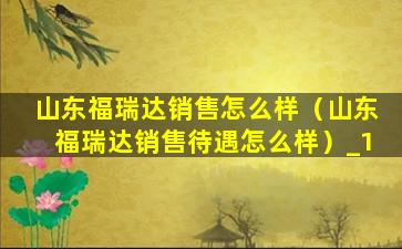 山东福瑞达销售怎么样(山东福瑞达销售待遇怎么样)