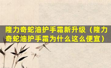 隆力奇蛇油护手霜新升级(隆力奇蛇油护手霜为什么这么便宜)