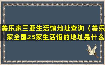美乐家三亚生活馆地址查询(美乐家全国23家生活馆的地址是什么地方)