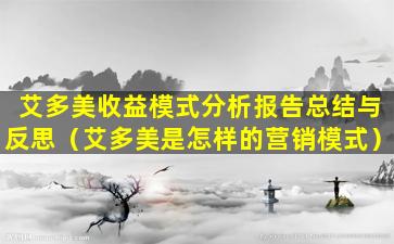 艾多美收益模式分析报告总结与反思(艾多美是怎样的营销模式)