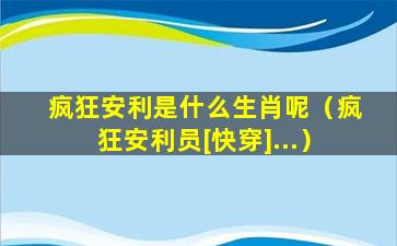 3、疯狂安利是什么生肖呢图片