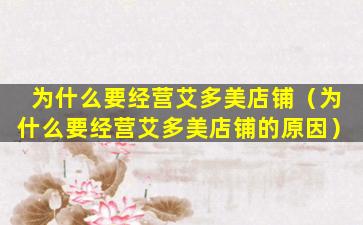 为什么要经营艾多美店铺(为什么要经营艾多美店铺的原因)