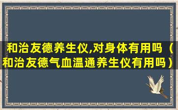 和治友德养生仪,对身体有用吗(和治友德气血温通养生仪有用吗)