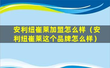 安利纽崔莱加盟怎么样(安利纽崔莱这个品牌怎么样)