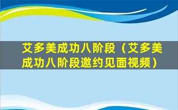 艾多美成功八阶段(艾多美成功八阶段邀约见面视频)