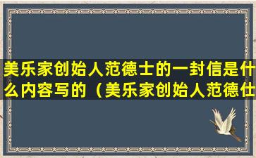 美乐家创始人范德士的一封信是什么内容写的(美乐家创始人范德仕获得过什么奖)