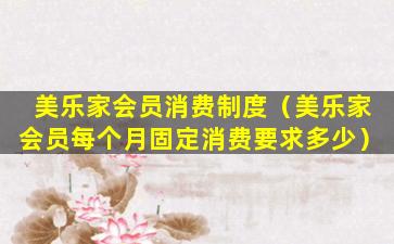 美乐家会员消费制度(美乐家会员每个月固定消费要求多少)