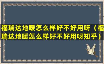 福瑞达地暖怎么样好不好用呀(福瑞达地暖怎么样好不好用呀知乎)